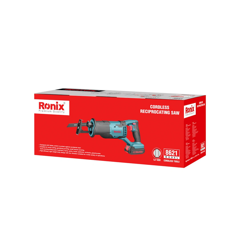 اره افقی‌بر شارژی 8621 رونیکس با در نظر گرفتن راحتی کاربر در استفاده‌های طولانی‌مدت طراحی شده است. طراحی ارگونومیک، بدنه سبک وزن و سطح لرزش پایین، خستگی دست اپراتور را به شدت کاهش می‌دهد. علاوه بر راحتی، ایمنی نیز در این مدل در اولویت قرار گرفته است. این دستگاه مجهز به سیستم سوئیچ ایمنی است که به طور مؤثری از عملکرد ناگهانی و تصادفی اره جلوگیری کرده و سطح بالایی از ایمنی حین کار را برای کاربر فراهم می‌آورد.