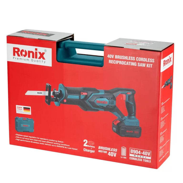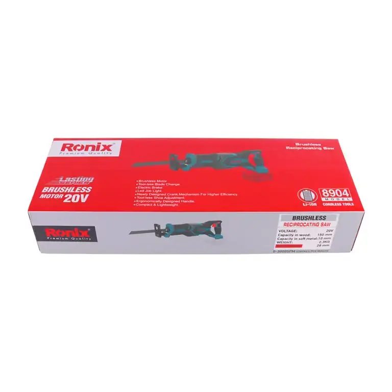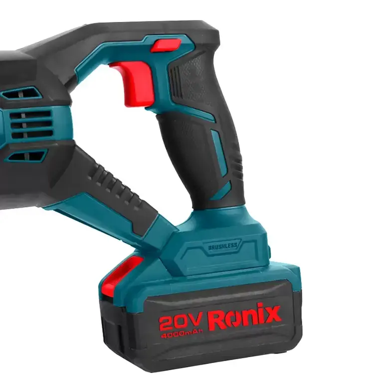 یکی از برجستهترین ویژگیهای ساختاری در این ابزار، بهرهمندی از موتور براشلس (Brushless) است که آن را در سری 89 رونیکس قرار میدهد. موتورهای بدون زغال، علاوه بر افزایش چشمگیر طول عمر دستگاه به دلیل کاهش سایش قطعات داخلی، بازدهی بالاتری را نسبت به موتورهای معمولی ارائه میدهند و در نتیجه، نیروی بیشتری با مصرف انرژی بهینهتر تولید میکنند. بدنه اره افقی بر 8904 با در نظر گرفتن ارگونومی برای استفاده طولانیمدت طراحی شده است تا اپراتور بتواند دستگاه را به راحتی و با کمترین خستگی کنترل کند.