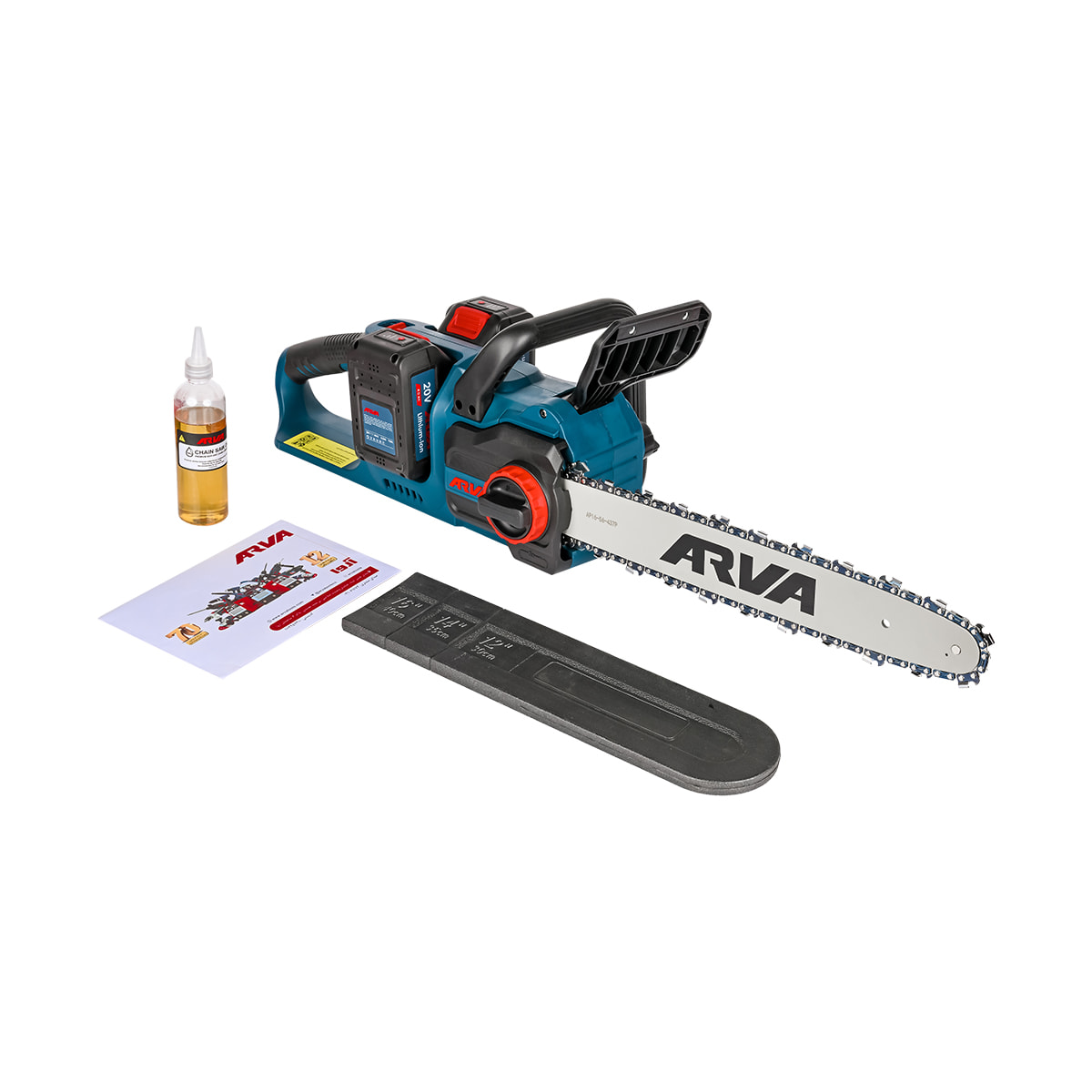 این اره زنجیری شارژی شامل یک بطری روغن، شارژر، دو عدد باتری لیتیوم یونی ۲۰ ولتی ۴ آمپر ساعت و یک عدد زنجیر است تا کاربران بتوانند بلافاصله پس از دریافت دستگاه، شروع به کار کنند.