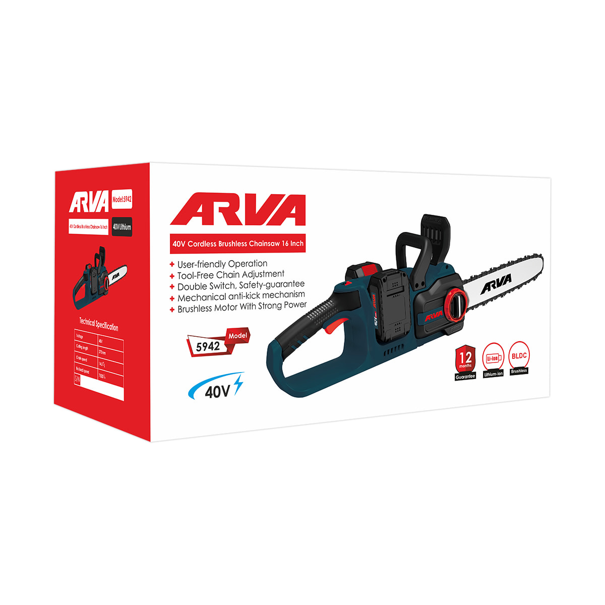 اره زنجیری شارژی براشلس ۴۰ ولت آروا مدل ۵۹۴۲