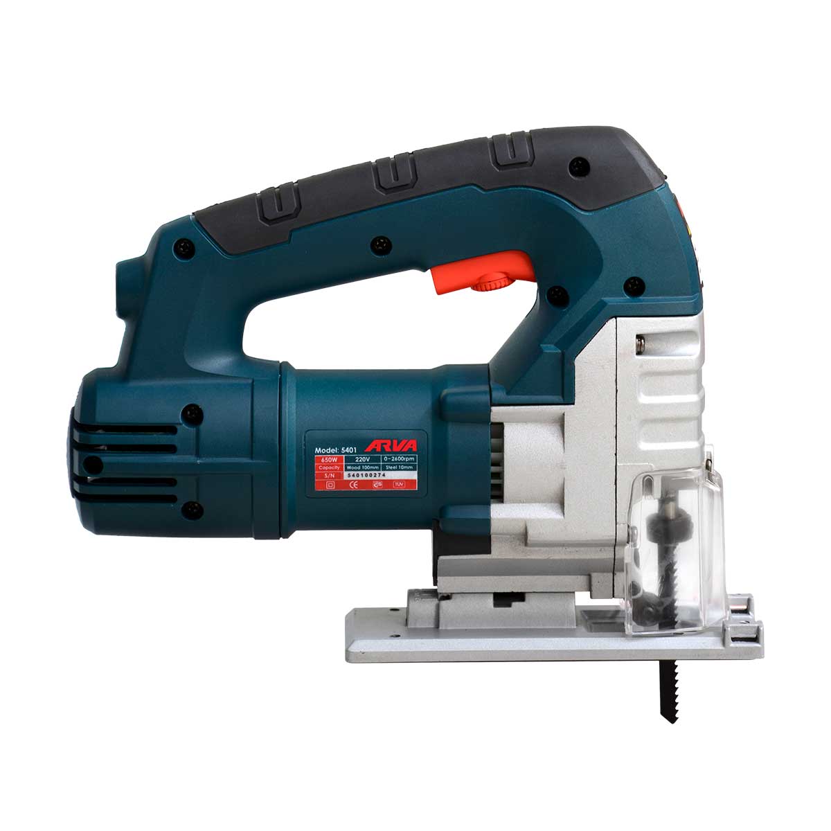 اره عمود بر آروا مدل ۵۴۰۱ دارای سرعت بیباری صفر تا ۲۶۰۰ دور در دقیقه است و امکان تنظیم سرعت برای کنترل دقیق برش فراهم شده است. تیغههای قابل نصب با طول ۱۰۰ میلیمتر، امکان برش چوب تا عمق ۱۰۰ میلیمتر و فلز تا ۱۰ میلیمتر را دارند. حرکت تیغه به صورت بالا و پایین بوده و گیره تیغه پیچی، نصب و تعویض تیغهها را آسان میکند. این دستگاه برای پروژههای نجاری، ساخت وسایل خانگی و کارهای فلزی کوچک کاربرد دارد.