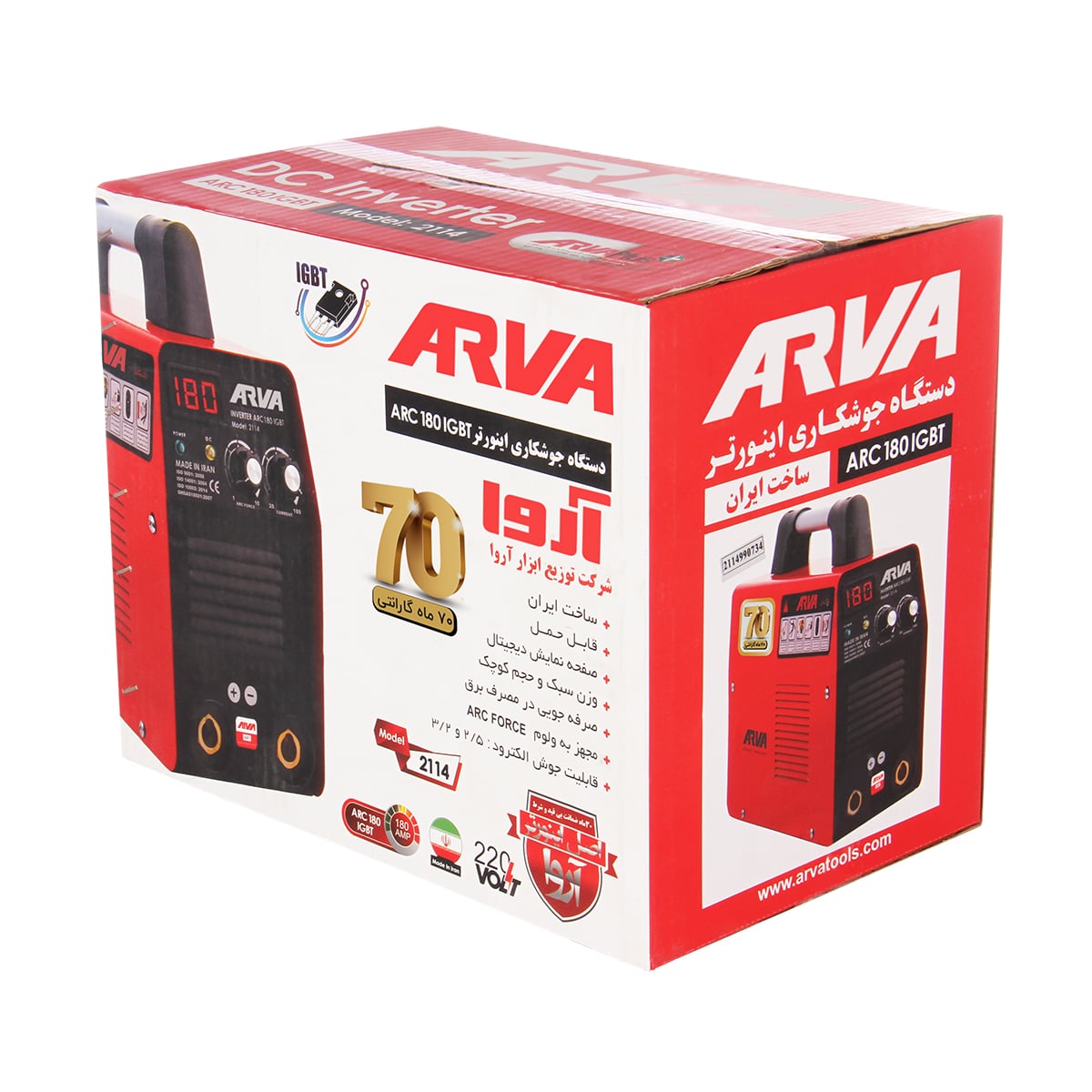 اینورتر جوشکاری ۱۸۰ آمپر IGBT آروا مدل ۲۱۱۴ یک انتخاب مناسب برای مصارف خانگی و کارگاههای کوچک است. طراحی سبک و ارگونومیک، جریان خروجی پایدار، امکان استفاده از الکترودهای مختلف و تکنولوژی IGBT و PWM، کیفیت و راحتی استفاده از دستگاه را تضمین میکند.