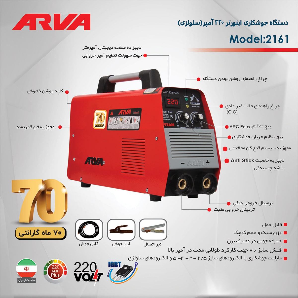 اینورتر جوشکاری ۲۲۰ آمپر سلولزی آروا مدل ۲۱۶۱
