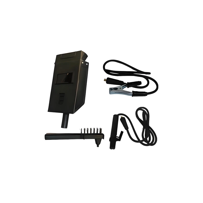 اقلام همراه شامل کابل و انبر اتصال، کابل و انبر جوشکاری، فرچه و چکش گلزنی، بند دوشی و ماسک جوشکاری است که استفاده ایمن و راحت از دستگاه را تضمین میکند.