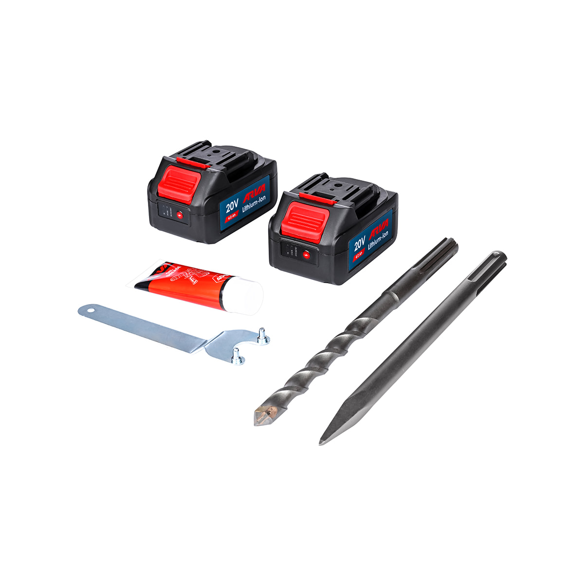 این مدل همراه با شارژر، دو باتری لیتیوم یونی ۴ آمپر ساعتی، یک مته، یک قلم نوک تیز، دسته جانبی، تیوپ گریس، آچار درب محفظه گریس، محفظه گریس و کیف BMC عرضه میشود. این اقلام استفاده سریع و نگهداری آسان ابزار را ممکن میسازد.