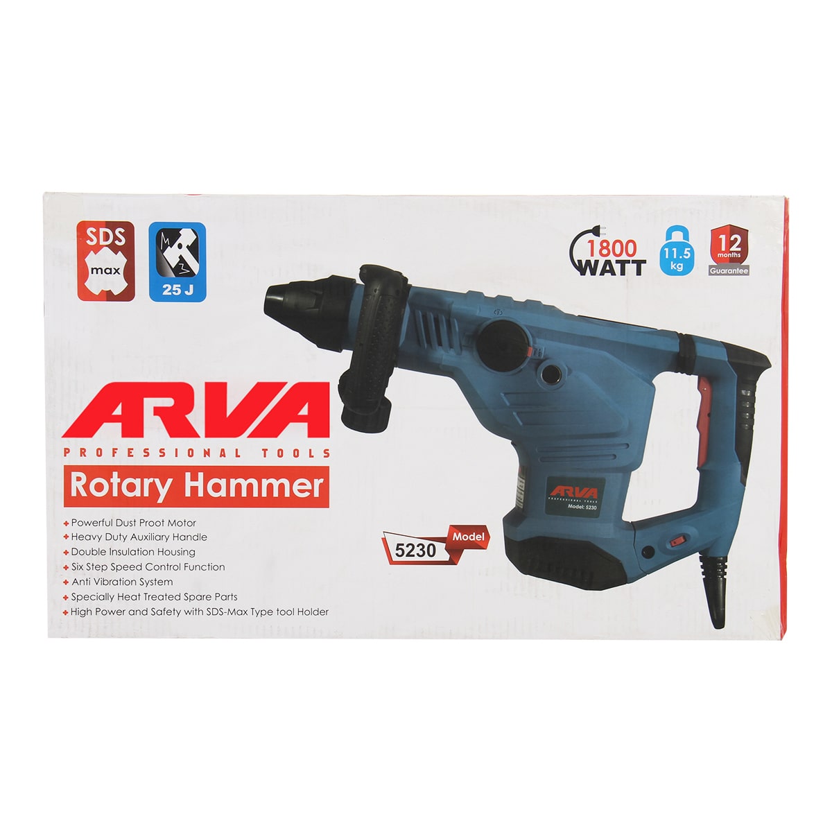 بتن کن آروا ۵۲۳۰ با توان ۱۸۰۰ وات و قدرت ضربه ۲۵ ژول، عملکردی بسیار قدرتمند در تخریب بتن و حفاری‌های عمیق دارد. این دستگاه با سرعت ضربه ۲۳۵۰ ضربه در دقیقه و سیستم قلم‌گیر پنج‌شیار SDS Max، برای مته‌ها و قلم‌های بزرگ طراحی شده است.