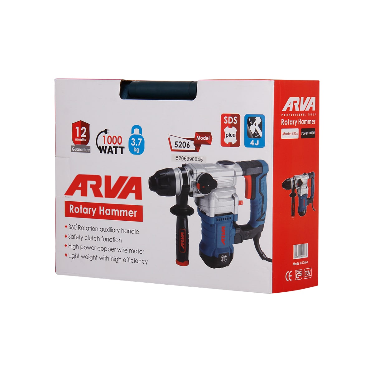 بتن کن آروا مدل ۵۲۰۶ با توان ۱۰۰۰ وات، قدرت ضربه ۴ ژول و سرعت ضربه ۴۰۰۰ ضربه در دقیقه، قادر است در بتن، آجر و مصالح سخت سوراخکاری و تخریب انجام دهد. سرعت بیباری ۸۵۰ دور در دقیقه و سیستم قلمگیر چهارشیار SDS Plus، امکان نصب سریع و محکم متهها و قلمها را فراهم میکند.