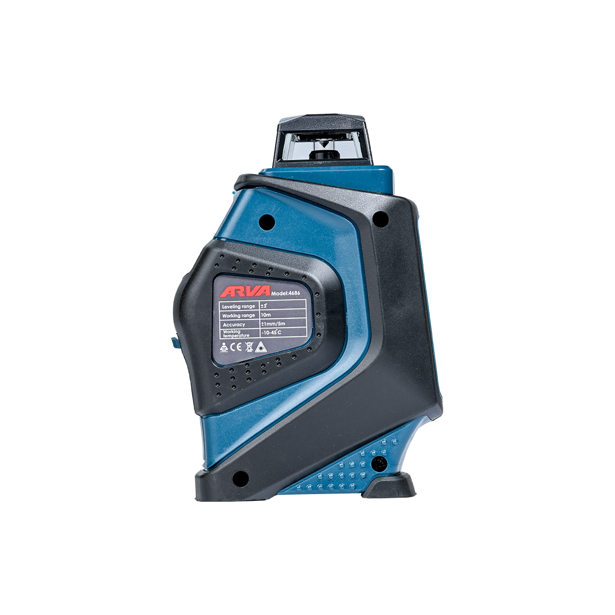 تراز لیزری آروا مدل ۴۶۸۶ با قابلیت خودترازی اتوماتیک در محدوده ۳± درجه، سرعت تنظیم بالایی دارد و در صورت خروج از محدوده مجاز، هشدار عدم تراز را نمایش میدهد. این دستگاه خطوط عمودی و افقی را بهصورت همزمان نمایش داده و امکان پوشش ۳۶۰ درجه را در حالت ۳D فراهم میکند. محدوده اندازهگیری ۱۰ متر برای حالت Cross Line و ۲۰ متر برای حالت ۳D، نیازهای بیشتر پروژههای داخلی را بهخوبی پاسخ میدهد. قابلیت قفل پاندول امکان حملونقل امن دستگاه را فراهم کرده و از آسیب دیدن سیستم لیزری جلوگیری میکند.