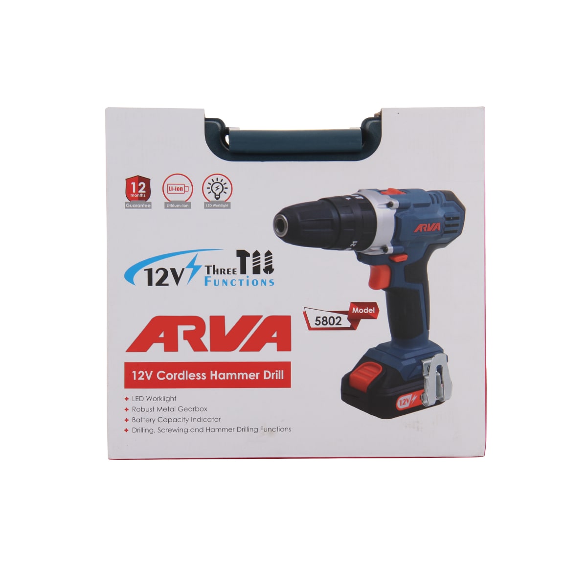 دریل پیچگوشتی شارژی چکشی ۱۲ ولت آروا مدل ۵۸۰۲