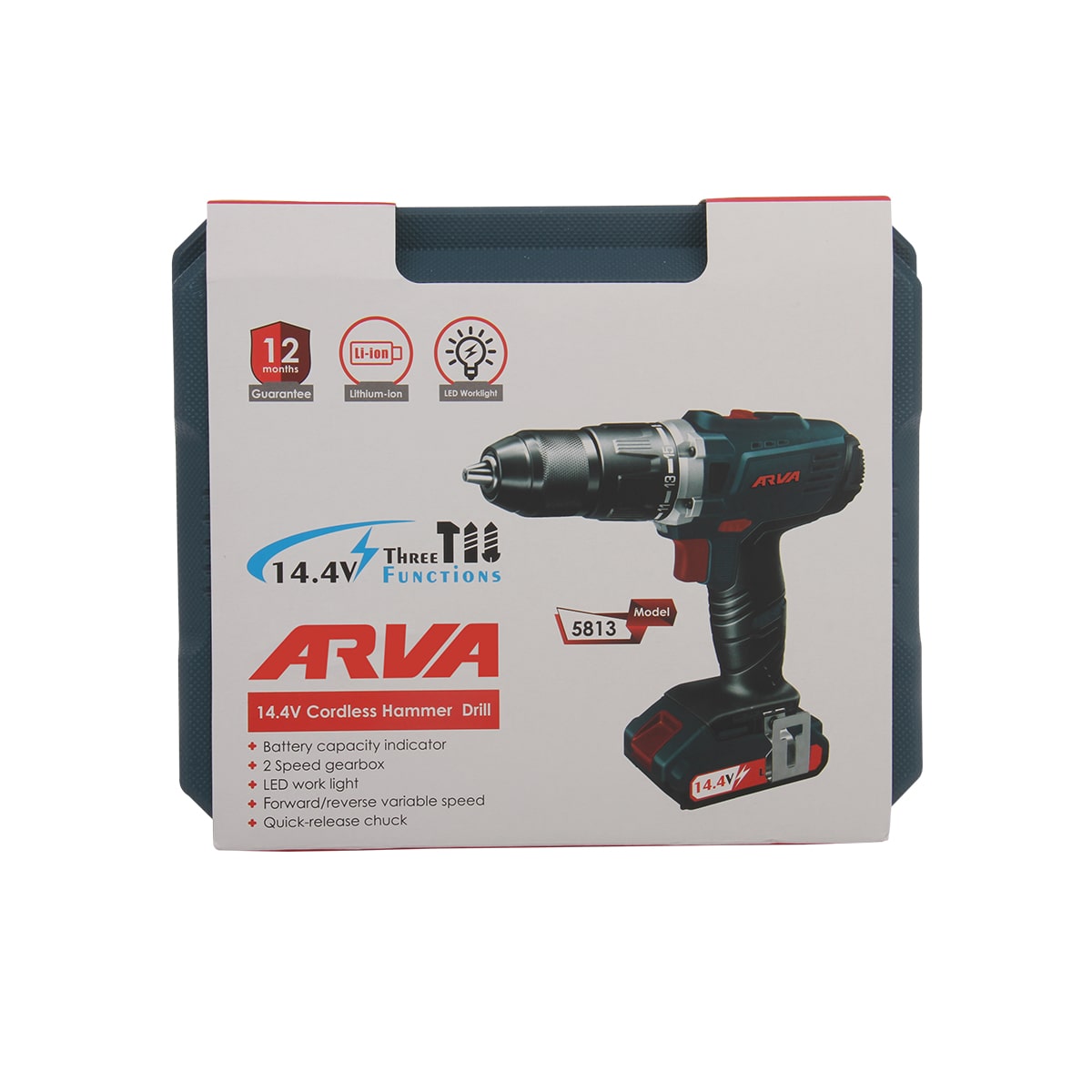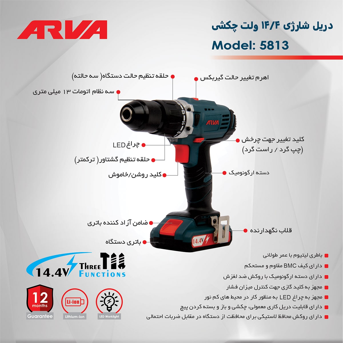 دریل پیچگوشتی شارژی چکشی ۱۴.۴ ولت آروا مدل ۵۸۱۳