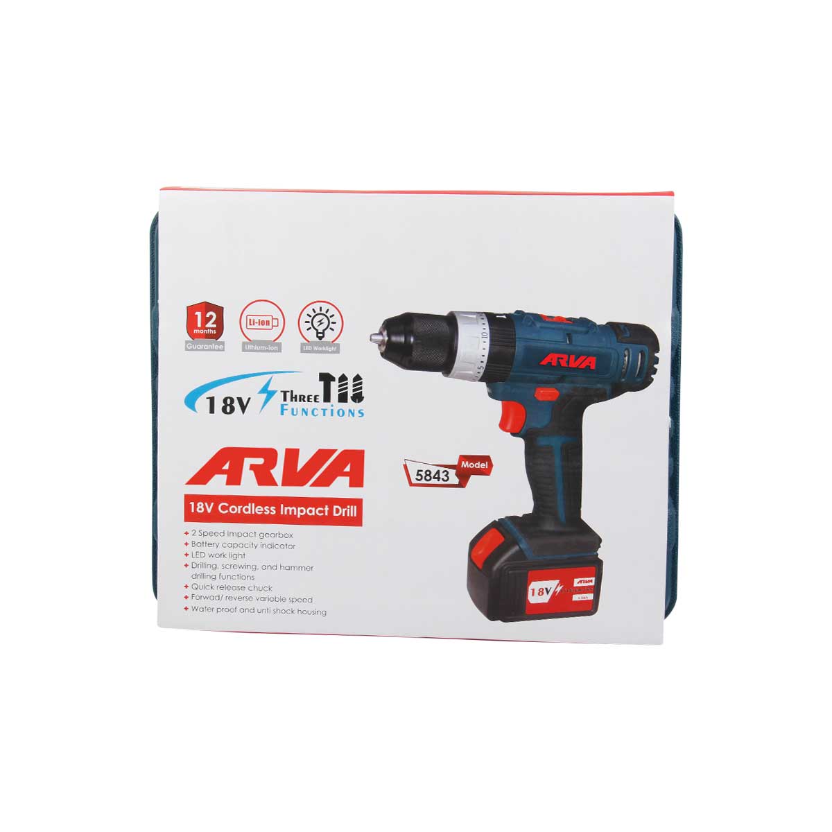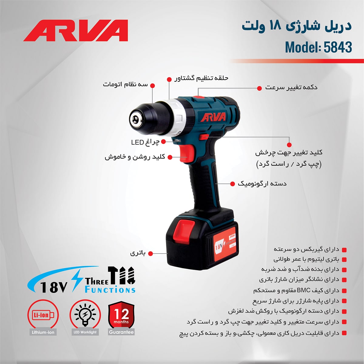 دریل پیچ گوشتی شارژی چکشی ۱۸ ولت آروا مدل ۵۸۴۳