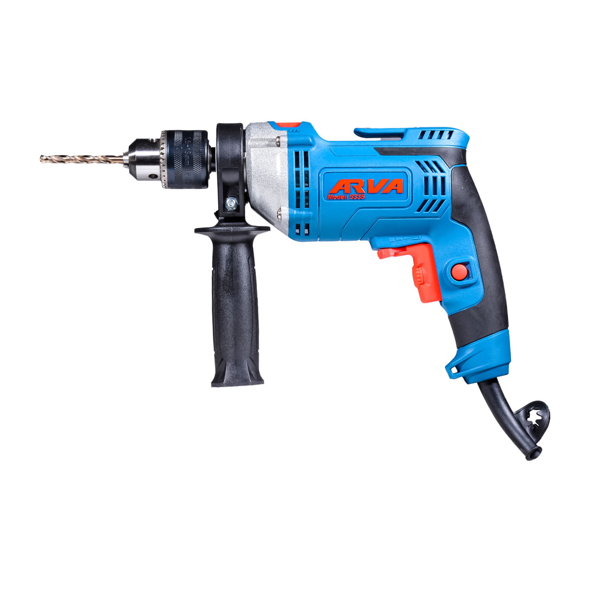دریل چکشی آروا مدل ۵۳۳۵ همراه با یک دسته جانبی ۳۶۰ درجه ارائه میشود که امکان کنترل بهتر و راحتی بیشتر را در حین استفاده از دستگاه فراهم میکند.