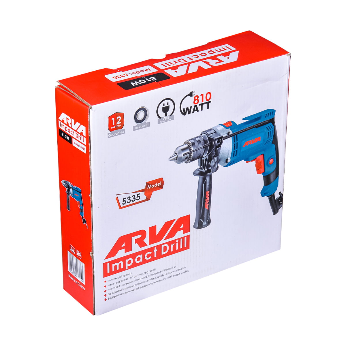 دریل چکشی ۸۱۰ وات ۱۳ میلیمتری آچاری آروا مدل ۵۳۳۵