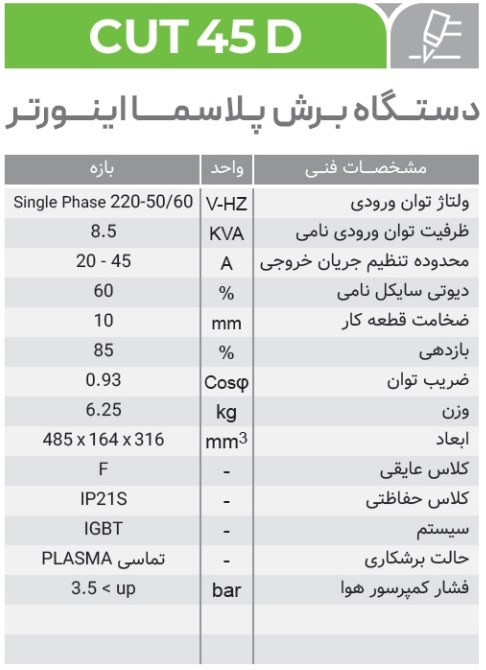 دستگاه جوش اینورتر پلاسما ایران ترانس مدل CUT45D (تک فاز)