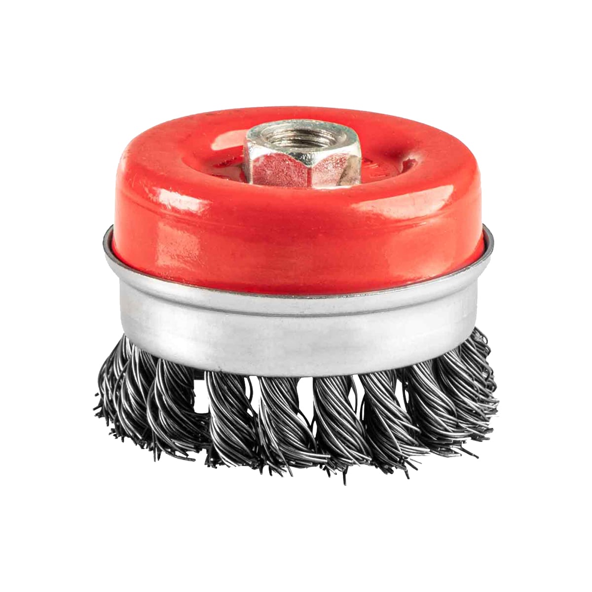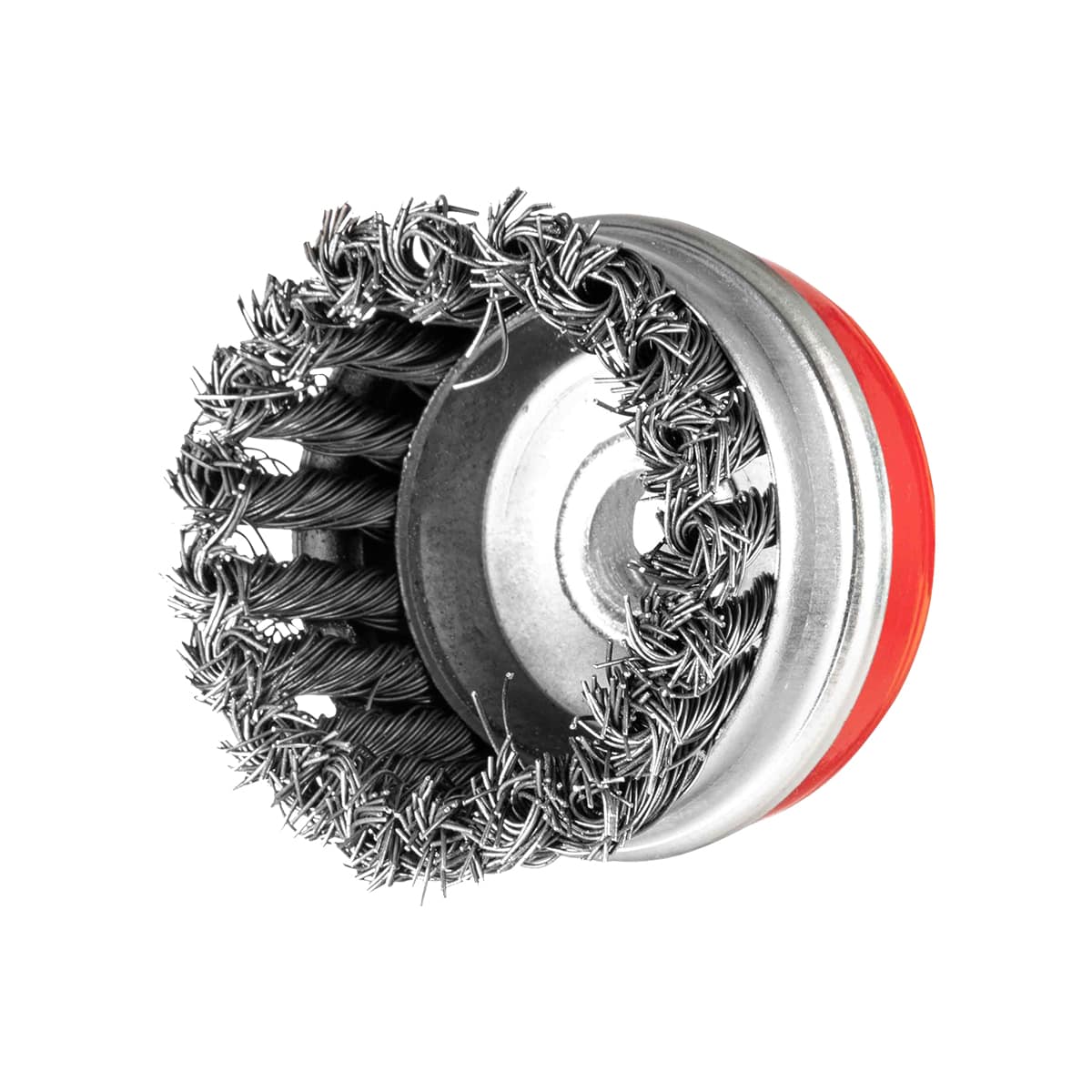 سیمهای فولادی مقاوم و بافته، دوام و انعطاف بالای فرچه را تضمین میکنند. پرس هیدرولیک سیمها به کاسه و مهره مقاومت در برابر خمشدگی و شکستگی را افزایش میدهد. طراحی بافته کاسهای، پوشش سطح وسیع و یکنواخت را ممکن میکند و استفاده روی ابزارهای ثابت و قابل حمل، انعطافپذیری کاربرد را افزایش میدهد.