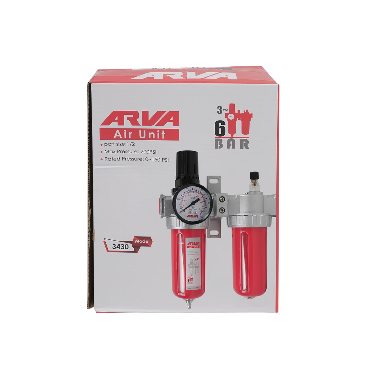 فیلتر دو قلو آروا مدل ۳۴۳۰ ابزاری کاربردی و مقاوم برای تصفیه و پالایش هوای فشرده است. قابلیت تنظیم فشار، جذب رطوبت و روغنکاری خودکار، این مدل را به گزینهای قابل اعتماد برای کارگاهها، تعمیرگاهها و سیستمهای صنعتی تبدیل کرده است.