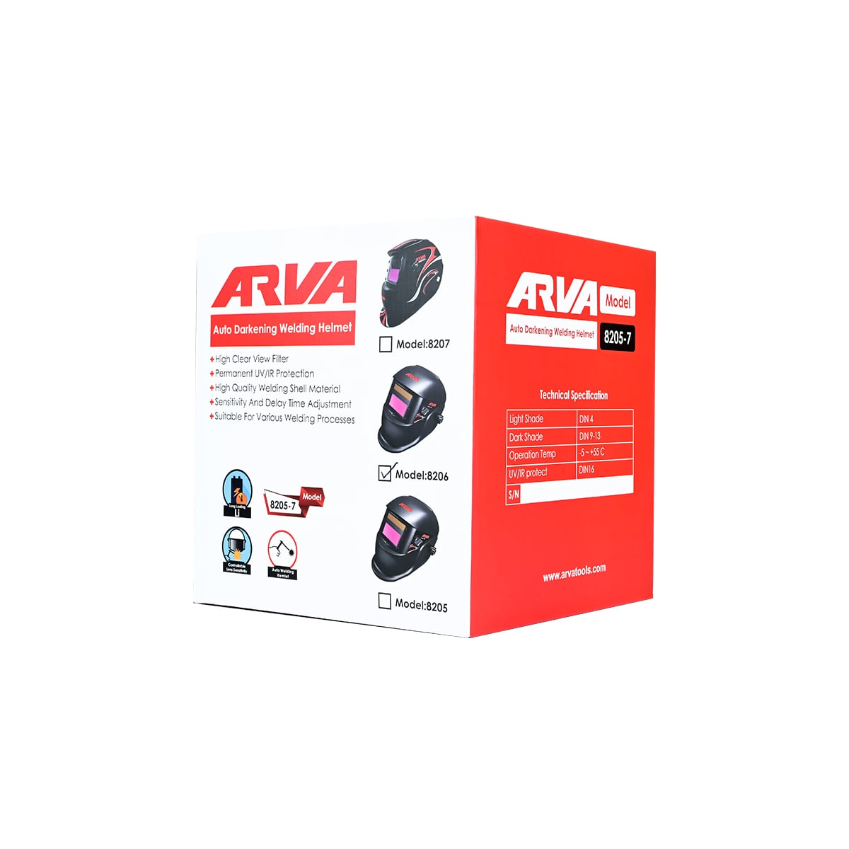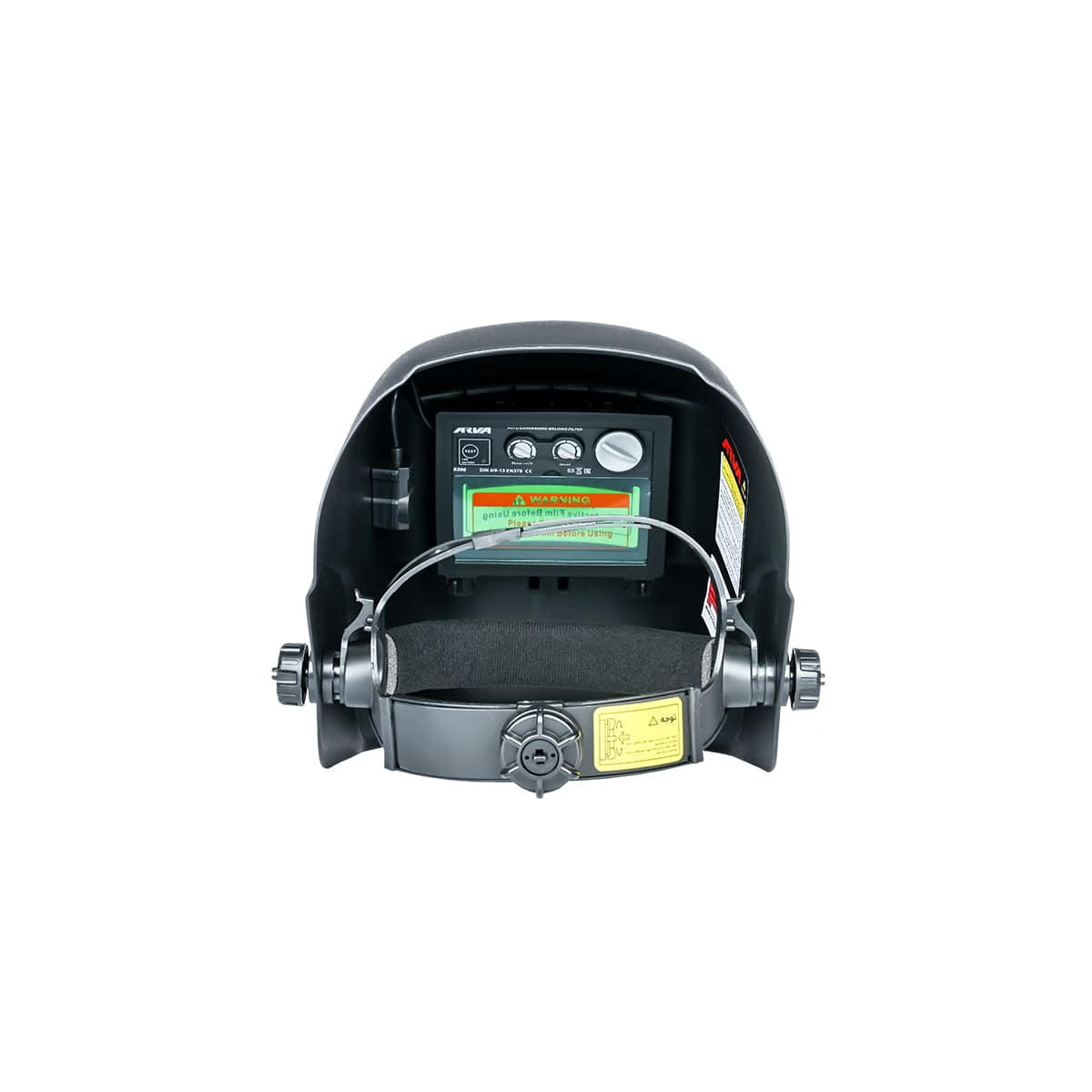 ماسک جوشکاری آروا ۸۲۰۶ بهصورت یک عدد ماسک اتوماتیک آماده استفاده عرضه میشود و نصب آن روی سر با استفاده از بندهای قابل تنظیم انجام میشود.