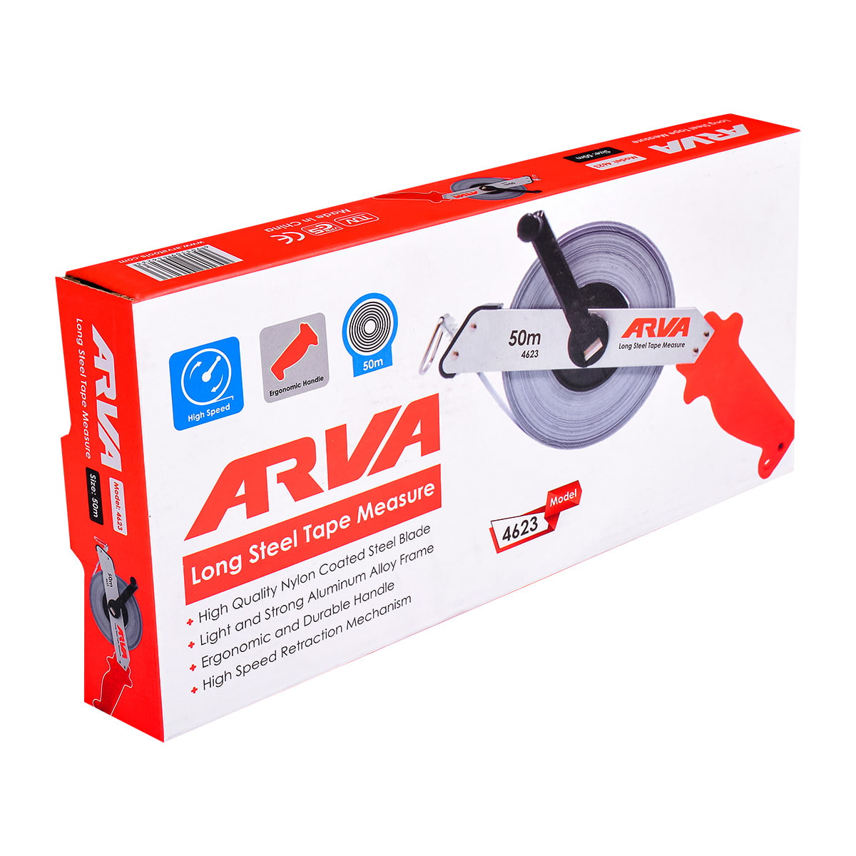 متر مهندسی آروا ۴۶۲۳ برای اندازهگیری دقیق فواصل تا ۵۰ متر طراحی شده است. وجود سیستم جمعکننده تیغه با سرعت بالا باعث میشود نوار استیل بهسرعت جمع شود و کاربر زمان کمتری صرف باز و بسته کردن نوار کند. این ویژگی برای محیطهای حرفهای و کارگاههای شلوغ اهمیت زیادی دارد. تیغه مقاوم و قاب سبک این ابزار باعث میشود استفاده از آن در پروژههای ساختمانی، عمرانی، نقشهبرداری و مهندسی ساده و مطمئن باشد.