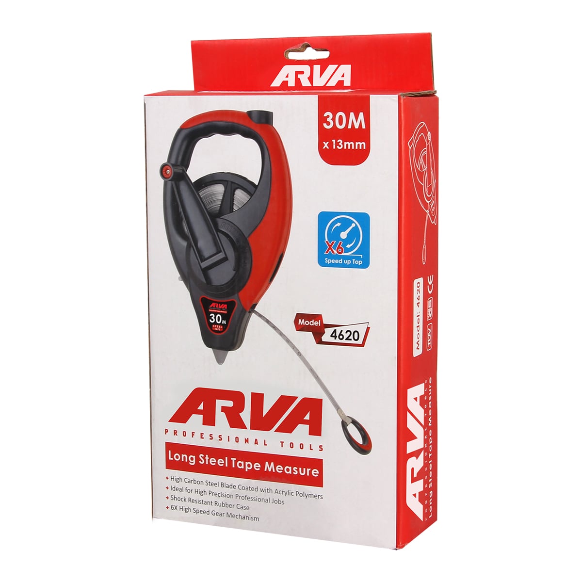 یکی از مهمترین ویژگیهای آروا مدل ۴۶۲۰، وجود مکانیسم گیربکس با سرعت ۶ برابر است؛ یعنی نوار ۳۰ متری با سرعت بیشتری جمع میشود و کاربر در پیمایشهای مکرر و اندازهگیریهای طولانی زمان کمتری صرف میکند. این خصوصیت برای تکنسینها، کارگران ساختمانی، نصابها یا کسانی که روزانه بارها نیاز به اندازهگیری دارند، یک مزیت واقعی محسوب میشود.
