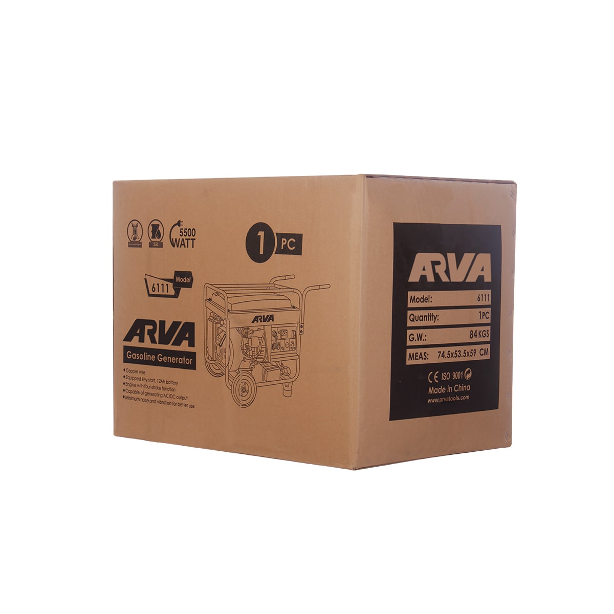 توان ۵۵۰۰ وات، خروجی AC با ولتاژ ۲۲۰ ولت و خروجی DC با ولتاژ ۱۲ ولت باعث میشود موتور برق آروا ۶۱۱۱ برای ابزارهای سنگینتر، پمپها، کمپرسورها، تجهیزات روشنایی، ابزارهای کارگاهی و لوازم برقی مختلف کارایی داشته باشد.