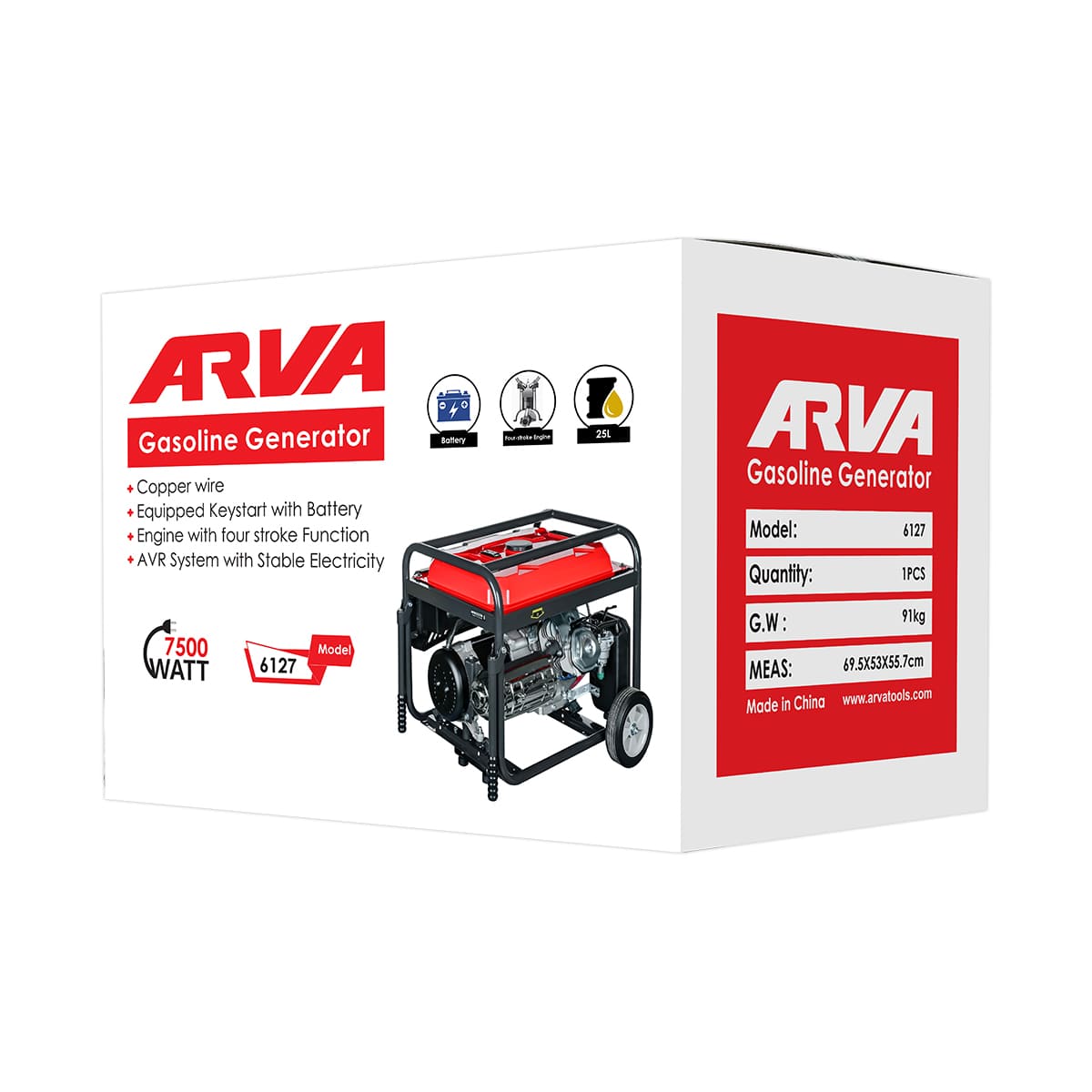 آروا مدل ۶۱۲۷ ترکیبی از توان بالا، دوام و سهولت کاربری را ارائه میدهد. موتور چهارزمانه OHV، سیمپیچی ۱۰۰٪ مس، مخزن سوخت بزرگ، استارت آسان، مافلر کمصدا و طراحی کمحجم و سبک از ویژگیهای برجسته این مدل هستند. دو چرخ حمل نیز جابجایی دستگاه را در محیطهای کارگاهی و نیمهباز آسان میکند.