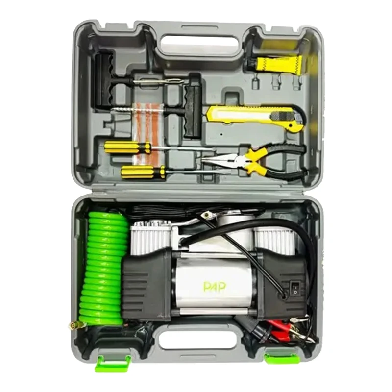 این پمپ باد با ابعاد 80 × 140 × 160 میلیمتر و وزن تنها 1100 گرم طراحی شده که حمل و نگهداری آن را بسیار آسان میکند. بدنه جمعوجور دستگاه برای قرارگیری در صندوق خودرو یا استفاده در سفر مناسب است. اتصال فندکی 12 ولت امکان استفاده مستقیم از برق خودرو را فراهم میکند و طراحی دو سیلندر، عملکرد پایدار و بازده بالاتری را نسبت به مدلهای تک سیلندر ارائه میدهد. برند PAP در این مدل، تمرکز ویژهای بر قابلیت حمل و سرعت عملکرد داشته است.