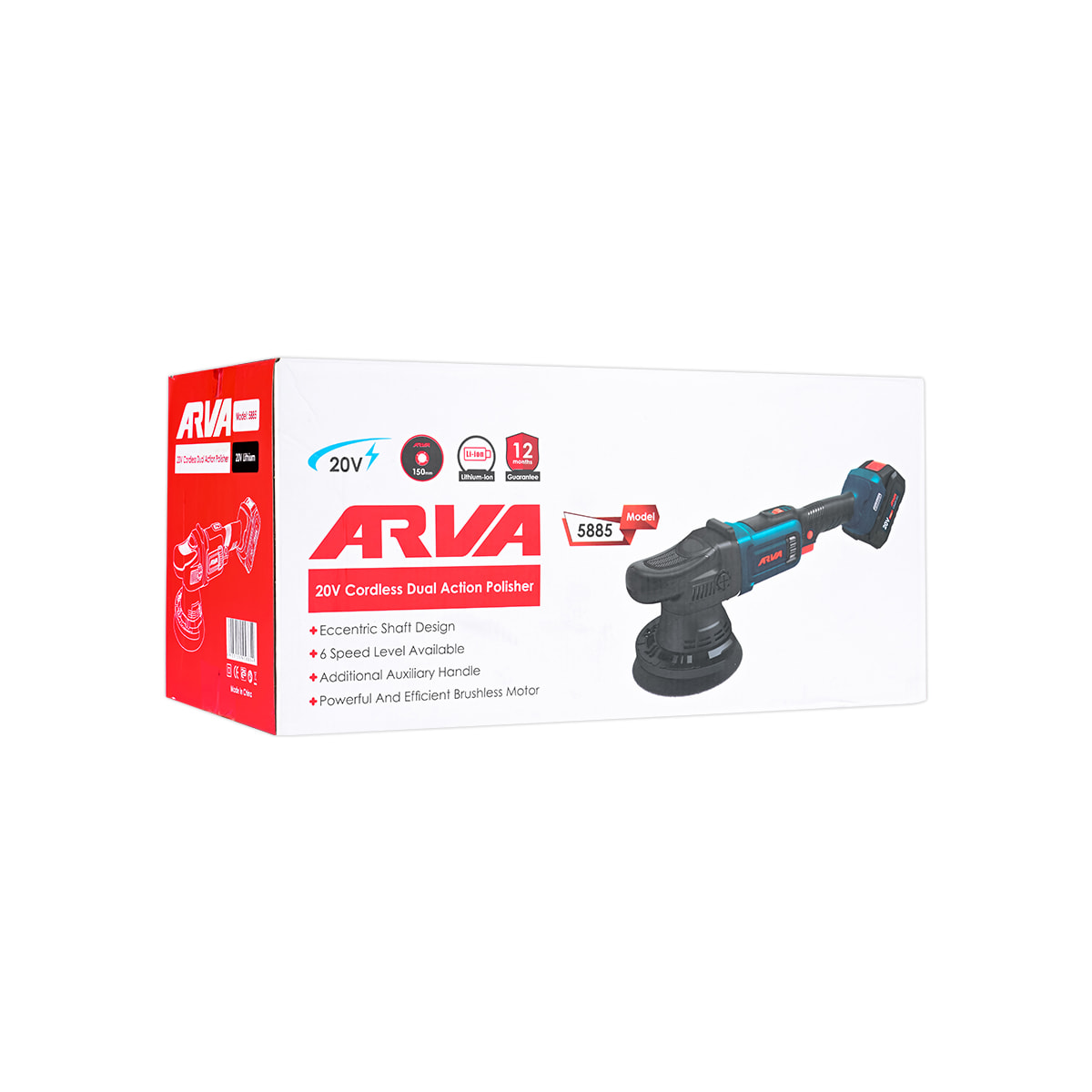 پولیش شارژی براشلس دوال اکشن ۲۰ ولت آروا مدل ۵۸۸۵ برای کاربران حرفه‌ای و افرادی که به ابزاری پرقدرت، سبک و کاملاً قابل‌حمل نیاز دارند گزینه‌ای مناسب است. دوال اکشن، موتور براشلس، سرعت تنظیم‌شونده و وجود باتری‌های قدرتمند، این مدل را به ابزاری کارآمد برای پولیش‌کاری تمامی سطوح تبدیل کرده است.
