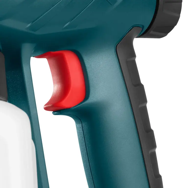 این مدل با طراحی ارگونومیک بدنه و تفنگی کارآمد، راحتی کاربر را در حین کار تضمین میکند. در انتهای دستگاه، کلید کنترل جریان تعبیه شده است که به کاربر اجازه میدهد میزان خروجی مواد را کاهش یا افزایش دهد. این تنظیم دقیق برای متناسبسازی جریان رنگ با ماهیت پروژه، بسیار حیاتی است.