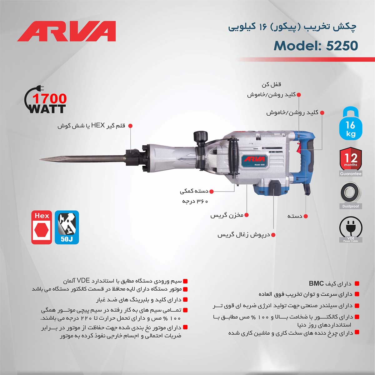 چکش تخریب (پیکور) ۱۶ کیلویی ۱۷۰۰ وات آروا مدل ۵۲۵۰