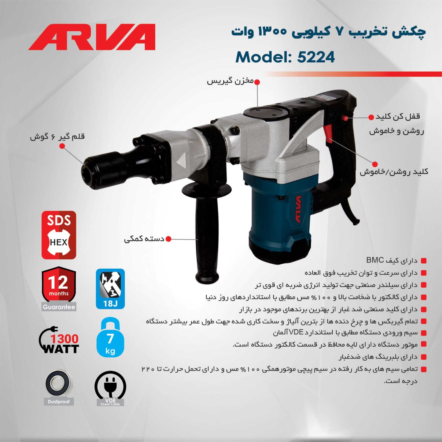 چکش تخریب ۷ کیلویی ۱۳۰۰ وات آروا مدل ۵۲۲۴