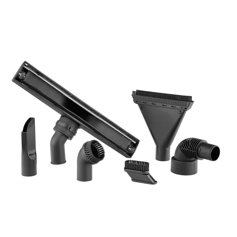 کوپلینگ اتصال سریع، شیر ورودی یک طرفه، لانس توربو ، شلنگ 5 متری فشار قوی PVC، مخزن مواد شوینده، تفنگ آب‌پاش فشار قوی، برس کف‌شوی، برس مخصوص مبلمان، برس زبر، پارویی جارو برقی