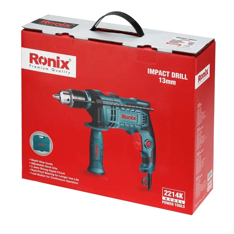 دریل چکشی Ronix 2214K ترکیبی از قدرت، دوام و راحتی در طراحی است. این مدل برای کاربرانی که به دنبال ابزار حرفهای برای کارهای ساختمانی، عمرانی یا صنعتی هستند، انتخابی مطمئن و پایدار بهشمار میرود. از موتور نیرومند 750 وات تا سهنظام فلزی مقاوم و دستهی ضدلرزش، همهی ویژگیها در راستای افزایش راندمان و کیفیت کار طراحی شدهاند.